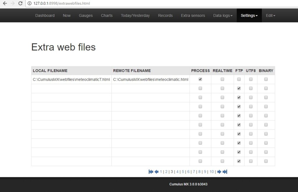 Se abre Cumulus MX en Settings -> Extra web files http://127.0.0.1:8998/extrawebfiles.html