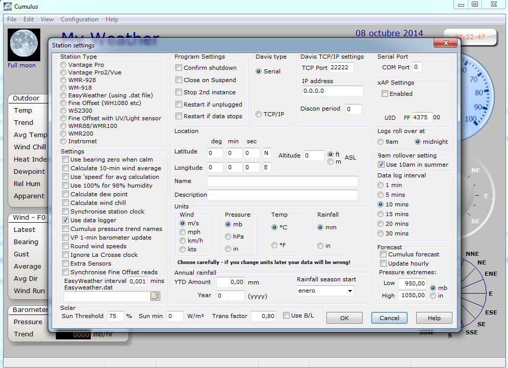 Marcar si queremos que Cumulus haga una predicción del tiempo en base a los datos de la estación.