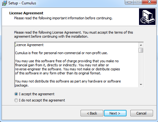 Una vez descargado, ejecutaremos el archivo CumulusSetup.exe e iremos aceptando las distintas pantallas que nos vayan saliendo.