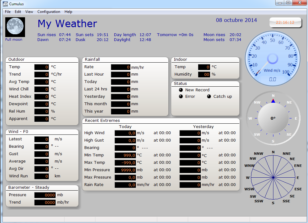 Cumulus es un sofware de captación y gestión de datos meteorológicos de distintas marcas y modelos de estaciones meteorológicas automáticas (EMA). Es muy sencillo e intuitivo, capaz de generar gráficos e informes configurables y subir datos a distintas Redes Meteorológicas y a webs privadas vía FTP