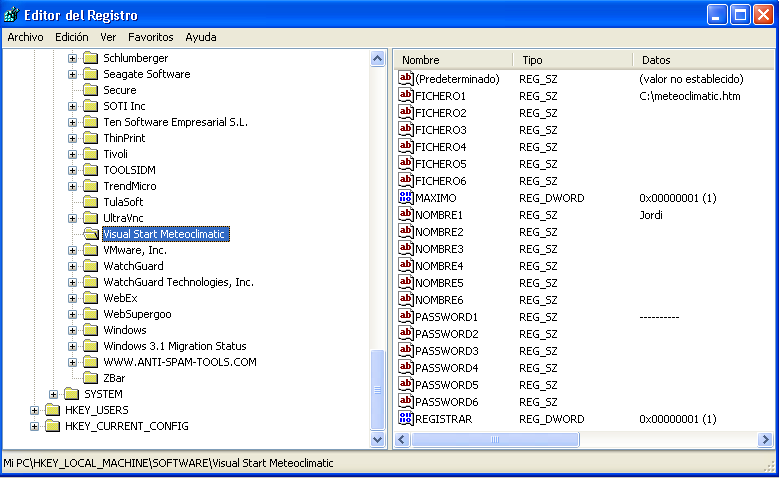 2.- contraseña (la utilizada para abrir la estación en www.meteoclimatic.net)